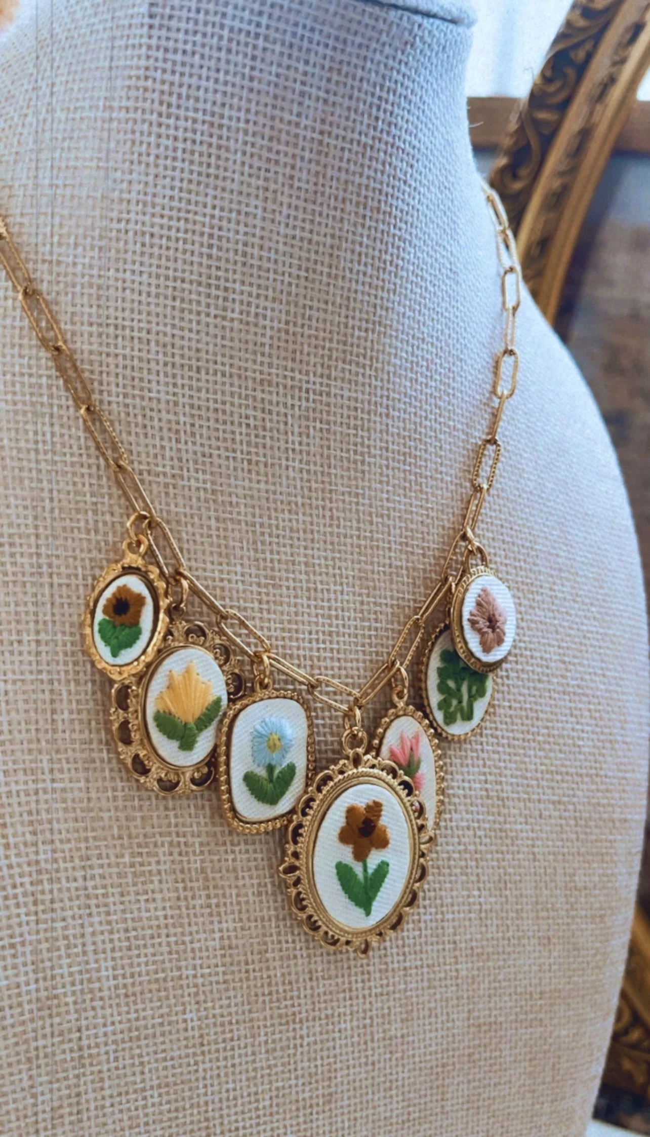 Shop › Meadow Charm Necklace Image 1 of 2 Image 2 of 2 Meadow Charm Necklace $68.00 Floral embroidered charm necklace Length: 16 inch 18 inch 20 inch 22 inch Add To Cart Added! Floral embroidered charm necklace Reviews Reviewer Name Review Date Star Rating Description Posted on Etsy Product Show More
